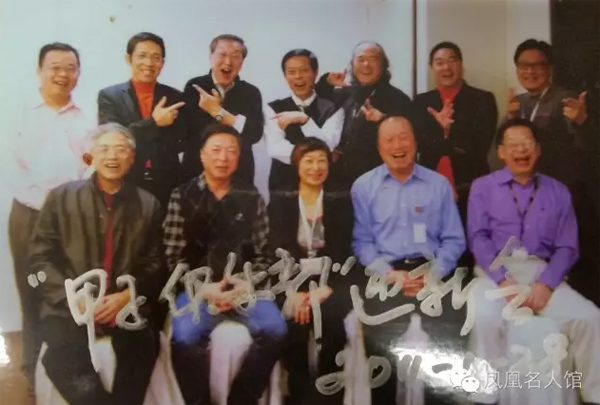 ↗2011年凤凰评论部召开“甲子俱乐部”迎新会,欢迎何亮亮先生加入60岁大军,评论部众星与一些跟60岁差很远的“年轻人”咧开大嘴嘻嘻哈哈地合影,前排左一的马鼎盛评价后排左一的朱文晖:“年轻的博士加入,把凤凰评论部的平均年龄拉低了2岁,挂了多年的‘老干部活动中心’的牌子,差点让朱博士拆掉。”