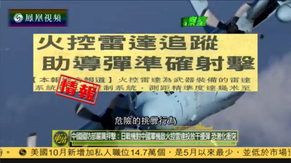 核心提示:中日战机在东海展开的追逐对峙事件不断升级,而且中国大陆指出,这是日本故意的挑衅,香港有军事评论员认为,这一次是中国国防部主动地披露,对日强烈警告。凤凰卫视11月2日《军情观察室》,以下为文字